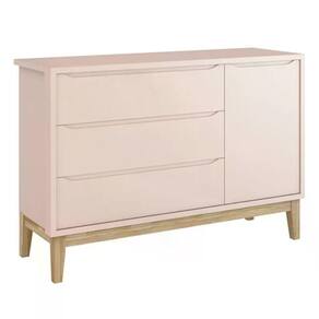 Dormitório Classic 3 Portas Rosa Com Pés Madeira Natural - Reller Móveis Rosa