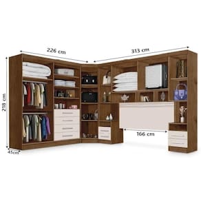 O Modulado J&A é a escolha perfeita para você! Ideal para organizar roupas, acessórios e calçados com beleza e funcionalidade. Os módulos contam com amplo espaço e uma ótima divisão interna, com nichos de tamanhos diferentes, ideais para guardar calçados e roupas. Os cabideiros, permitem organizar peças maiores, como casacos e vestidos sem amassar. Já as gavetas, garantem uma melhor otimização de espaço, perfeitas para acessórios e peças menores, deixando seu quarto sempre organizado. Além disso, para deixar seu quarto com cara de planejado, o combo conta com painel e cabeceira, tornando seu quarto completo e suas noites de sono ainda mais confortáveis.