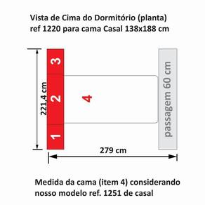 Dormitório De Casal Completo 1220 Castanho * Colchão e itens de decoração não estão inclusos. Imagens meramente ilustrativas. Ideal para casais que procuram de um dormitório com bom espaço interno e compacto para os ambientes das grandes metrópoles. - 01 Guarda-roupas de 1 porta e 3 gavetas com mesa de cabeceira embutida modelo 1416 esquerdo; - 01 Guarda-roupas de 1 porta e 3 gavetas com mesa de cabeceira embutida modelo 1416 direito; - 01 Maleiro de casal 4 portas modelo 1226; - 01 Cama de Casal Convencional para colchão 138x188 cm com Baú e 4 gavetas modelo 1251. - Corrediças, dobradiças a cabideiros de metal; - Chapa de 15mm de espessura; - Puxadores 256mm; DIMENSÕES DO PRODUTO MONTADO - ALTURA 240 CM; - LARGURA 221,4 CM; - PROFUNDIDADE 51CM NOS ARMÁRIOS E 217CM NA CAMA Vão livre de 146cm de comprimento por 110cm de altura abaixo do maleiro. Para compras de dormitórios sem a cama inclusa lembre-se sempre de verificar se a cabeceira da sua cama cabe neste espaço. Atenção: Não nos responsabilizamos, no ato da entrega, por desmontagens, subir escadas/elevadores ou transporte por guincho para apartamentos. Eventuais despesas são de responsabilidade do cliente. Confira as dimensões deste produto e certifique-se de que o mesmo passará normalmente por supostos elevadores, portas, escadas e/ou corredores de sua moradia.