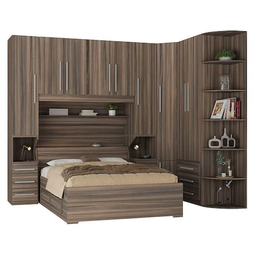Dormitório De Casal Sem Cama 1219s San Remo * Cama, colchão e itens de decoração não estão inclusos. Imagens meramente ilustrativas. Ideal para casais que procuram de um dormitório robusto, com bom espaço interno, com bom aproveitamento do cômodo, cada dia mais compacto nos ambientes das grandes metrópoles. 02 Guarda-roupas de 1 porta e 3 gavetas com mesa de cabeceira embutida modelo 1416; 01 Maleiro de casal 4 portas modelo 1226; 01 Armário de Canto Sextavado modelo 1231; 01 Guarda-roupa de 2 portas e 3 gavetas modelo 1228; 01 Cantoneira com 6 prateleiras curvas modelo 1322; - Corrediças, dobradiças a cabideiros de metal; - Chapa de 15mm de espessura; - Puxadores 256mm; DIMENSÕES DO PRODUTO MONTADO - ALTURA 240 CM; - LARGURA 298,4 CM; - PROFUNDIDADE 51CM NOS ARMÁRIOS E 190CM MÍNIMO PARA COLOCAÇÃO DA CAMA Vão livre de 146cm de comprimento por 110cm de altura abaixo do maleiro. Para compras de dormitórios sem a cama inclusa lembre-se sempre de verificar se a cabeceira da sua cama cabe neste espaço. Embora a cama não acompanhe, informamos que o painel, o frontal e prateleira localziados abaixo do maleiro são inclusos (pois fazem parte do maleiro e não da cama). Produto entregue desmontado. Requer montagem. Manual disponível no site do fabricante. Atenção: Não nos responsabilizamos, no ato da entrega, por desmontagens, subir escadas/elevadores ou transporte por guincho para apartamentos. Eventuais despesas são de responsabilidade do cliente. Confira as dimensões deste produto e certifique-se de que o mesmo passará normalmente por supostos elevadores, portas, escadas e/ou corredores de sua moradia.