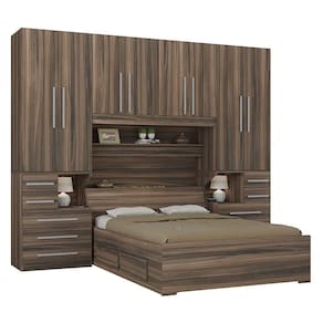 Dormitório De Casal Sem Cama 1223s San Remo Dormitório de casal para embutir a cama (não inclusa), versão mais simples, mas que de simples não tem nada: são 2 guarda-roupas com 10 gavetas no total, um maleiro de 4 portas bem espaçoso e com espaço interno para aproveitar seu cômodo da melhor forma. O dormitório é na verdade um conjunto de módulos. Você pode mudar a composição trocando ou adicionando módulos conforme seu gosto e seu espaço. - 02 Guarda-roupas de 2 portas e 5 gavetas com mesa de cabeceira embutida modelo 1224; - 01 Maleiro de casal 4 portas modelo 1226; - Corrediças, dobradiças a cabideiros de metal; - Chapa de 15mm de espessura; - Puxadores 256mm; DIMENSÕES DO PRODUTO MONTADO - ALTURA 240 CM; - LARGURA 293 CM; - PROFUNDIDADE 51CM NOS ARMÁRIOS (RESERVAR ESPAÇO PARA SUA CAMA). Vão livre de 146cm de comprimento por 110cm de altura abaixo do maleiro. Para compras de dormitórios sem a cama inclusa lembre-se sempre de verificar se a cabeceira da sua cama cabe neste espaço. Embora a cama não acompanhe, informamos que o painel, o frontal e prateleira localziados abaixo do maleiro são inclusos (pois fazem parte do maleiro e não da cama). Atenção: Não nos responsabilizamos, no ato da entrega, por desmontagens, subir escadas/elevadores ou transporte por guincho para apartamentos. Eventuais despesas são de responsabilidade do cliente. Confira as dimensões deste produto e certifique-se de que o mesmo passará normalmente por supostos elevadores, portas, escadas e/ou corredores de sua moradia.