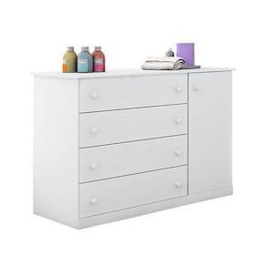 Cômoda Infantil Helena 1 Porta e 4 Gavetas - Phoenix Baby Estrutura em MDP Pintura UV alto brilho 1 Porta Dobradiças metálicas 4 Gavetas Corrediças telescópicas Cabideiro Prateleiras Puxadores com formato bola Amplo espaço interno