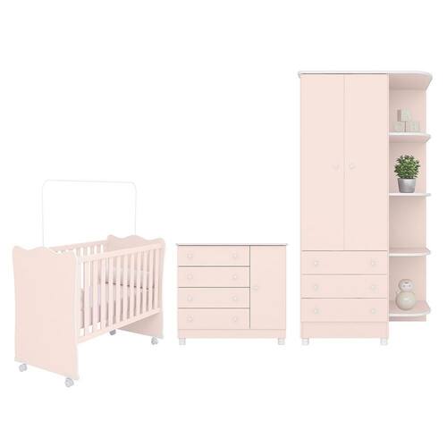 Dimensões: Tamanho do Guarda-Roupa (L x A x P): 88,5 x 191 x 47,5 cm Tamanho da Cômoda (L x A x P): 93 x 85,5 x 45 cm Tamanho do Berço (L x A x P): 68 x 96,8 x 133,5 cm
