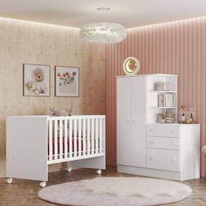 Dormitório Infantil Doce Sonho Guarda Roupa Com Cômoda E Berço Reto Branco - Qmovi Branco Dormitório Infantil Doce Sonho Guarda Roupa com Cômoda e Berço Reto - Qmovi O Dormitório Infantil Doce Sonho foi pensado para quem precisa de otimização no espaço, o Guarda Roupa com Cômoda é perfeito para acomodar os objetos do bebê com praticidade e comodidade. Organize tudo o que você precisa em um só lugar com este móvel moderno e funcional. Já o Berço Doce Sonho Reto foi projetado especialmente para oferecer conforto e ao bebê. Com um design clássico e delicado, ele garante beleza e aconchego para o ambiente. Guarda Roupa com Cômoda Infantil Doce Sonho 2 Portas e 3 Gavetas - Qmovi - Estrutura em MDP - Pintura UV - 2 Portas - Dobradiças metálicas - 3 Gavetas - Corrediças metálicas - Cabideiro oblongo metálico - Puxadores em plástico poliestireno - Cômoda e nichos acoplados no guarda-roupa - Maior organização e praticidade