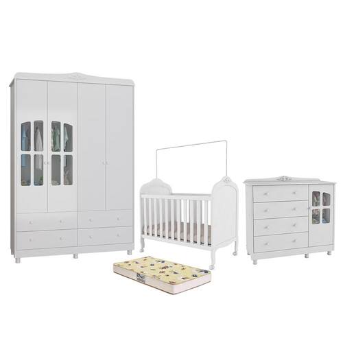 Dormitório Infantil Elô Janelas Guarda Roupa, Cômoda e Berço com Colchão Supreme - Móveis Peroba