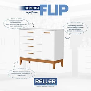 Cômoda Infantil Flip 1 Porta e 4 Gavetas - Reller Móveis