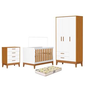 Dormitório Infantil Flip Guarda Roupa 3 Portas, Cômoda 4 Gavetas e Berço com Colchão Supreme - Reller Móveis