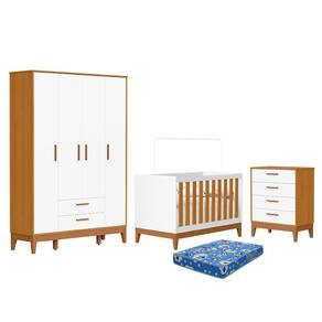 Dormitório Infantil Flip Guarda Roupa 4 Portas, Cômoda 4 Gavetas e Berço com Colchão Physical - Reller Móveis