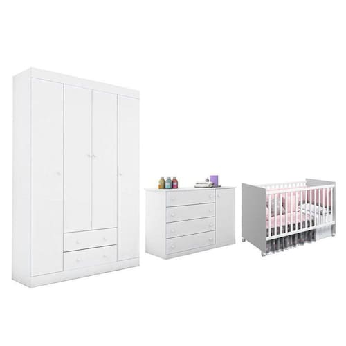 Dormitório Infantil Helena Guarda Roupa, Cômoda e Berço Tico - Phoenix Baby O Dormitório Helena possui traços refinados. É composto por um guarda-roupa e uma cômoda que são peças muito importante para o quarto e para montar o visual perfeito, esse modelo é uma ótima opção. Ele possui compartimentos internos para roupas e objetos em geral ficarem organizados de maneira prática para o dia a dia. E para completar o berço americano Tico para trazer mais segurança e conforto. Todo cuidado que seu bebê precisa nessa combinação perfeita.
