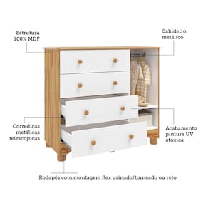 Cômoda Infantil Júnior New 1 Porta e 4 Gavetas - Móveis Peroba