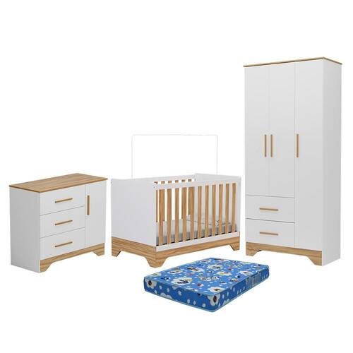 Dormitório Infantil Popy Retrô Plus Guarda Roupa, Cômoda e Berço com Colchão Baby Physical - Móveis Peroba