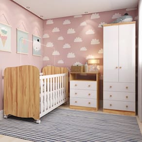 Dormitório Infantil Smim Guarda Roupa, Cômoda e Berço com Colchão Supreme - Móveis Peroba