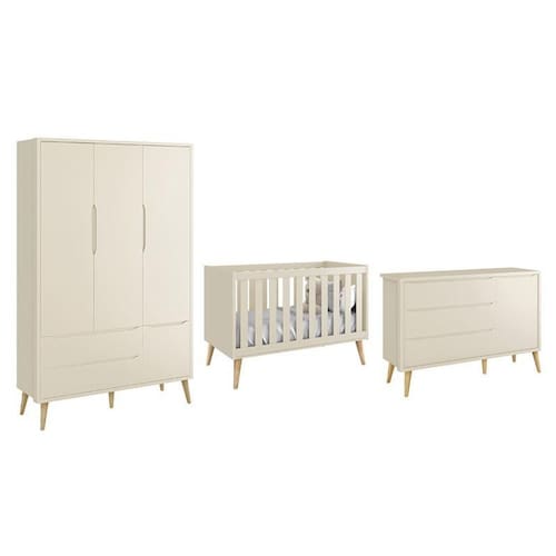 O Dormitório Theo conta com um design moderno, trazendo elegância e sofisticação para o quartinho do bebê. Ele é composto por um Guarda-Roupa e uma cômoda, ambos com amplo espaço interno. E um Berço que acompanha o desenvolvimento do seu filho se transformando em uma linda mini cama.