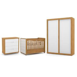 O Dormitório Tutto New é composto por um guarda-roupa, uma cômoda e um berço com capitonê, oferecendo elegância e funcionalidade. O guarda-roupa possui 2 portas deslizantes com puxadores usinados, 4 gavetas internas, cabideiros em alumínio e amplo espaço interno. A cômoda possui 4 gavetas com corrediças telescópicas e um amplo espaço garantindo praticidade. O berço, certificado pelo INMETRO, tem estrutura em MDF, 3 regulagens de altura no estrado, rodízios com trava e pode ser transformado em mini cama. O toque de sofisticação fica por conta do capitonê em bouclê com espuma antichama.