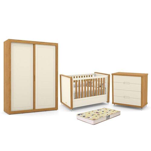 Dormitório Tutto New 2 Portas, Cômoda 4 Gavetas e Berço com Colchão D18 - Matic Móveis