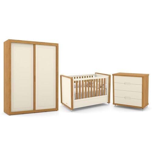 Dimensões: Tamanho do Guarda-Roupa (L x A x P): 185,8 x 218 x 54,8 cm Tamanho da Cômoda (L x A x P): 96 x 98 x 44 cm Tamanho do Berço (L x A x P): 140 x 101,5 x 83,5 cm