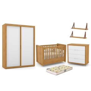 Dormitório Tutto New 2 Portas, Cômoda, Berço com Colchão D18 e Prateleiras - Matic Móveis