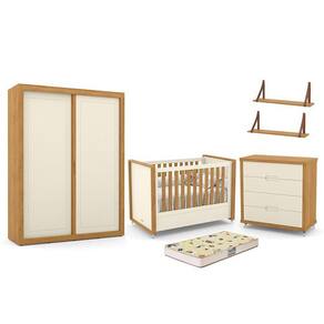 Dormitório Tutto New 2 Portas, Cômoda, Berço com Colchão D18 e Prateleiras - Matic Móveis