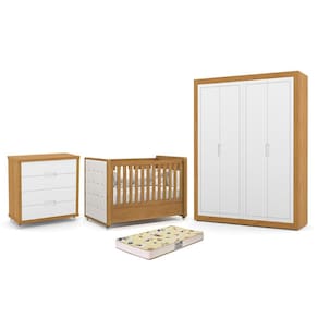 Dormitório Tutto New 4 Portas, Cômoda 4 Gavetas e Berço com Capitonê e Colchão Supreme - Matic Móveis