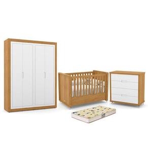Dormitório Tutto New 4 Portas, Cômoda 4 Gavetas e Berço com Colchão D18 - Matic Móveis
