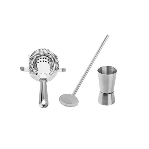 Copo dosador duplo, coador strainer e colher canudo em aço inox. Dosadores são acessórios essenciais para preparar aquele drink perfeito. Acessório prático para elaborar desde bebidas simples até os mais sofisticados coquetéis. O uso do copo de dose facilita a padronização das receitas e o controle do estoque de bebidas. Coador Strainer com quatro apoios serve para, após o preparo do drink, separar o gelo do restante do líquido antes de servir no copo. Muito utilizado para coagem de drinks que são servidos em taça de martini, passar drinks de um copo a outro e até mesmo para aquela famosa caipirinha. Possui 4 apoios com ótimo encaixe para utilizar em coqueteleiras.