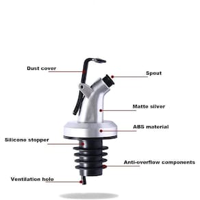 Fácil de usar: fácil de instalar e fácil de operar. A operação com uma mão permite que você liberte suas mãos.Grande acessório: É fácil controlar a saída de líquido com este plugue. E é amplamente utilizado em cozinhas, restaurantes, cafeterias, bares, boates e bares de coquetéis.Estrutura perfeita: Este bico foi projetado para caber em vários tamanhos de garrafas, e há uma ventilação dentro do dispenser para troca de ar.Abertura de garrafa de 16mm a 20mmMaterial: Feito de ABS, silicone de grau alimentício, 100% não enferruja, não tóxico, seguro e durável.Dimensões: 2,75 in 6.98 cm 0,59 in 1.49 cm 1,37 in 3.47 cm 0,78 in 1.98 cm Contém 1 UnidadeImportado dos EUA Marca: Auconda