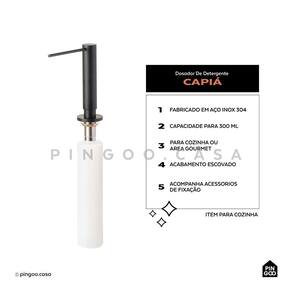 É um produto que combina perfeitamente com os outros utensílios da cozinha além de ocupar pouco espaço na bancada. Quando acionado, libera a quantidade ideal de detergente ou sabão para uso, evitando o desperdício.