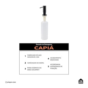 Com design moderno e discreto, o produto combina perfeitamente com os outros utensílios da cozinha, ocupando pouco espaço na bancada. Seu acionamento libera a quantidade ideal de detergente ou sabão para uso, evitando desperdícios e mantendo o ambiente sempre organizado.
