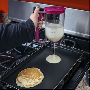 Utilize este Dosador de Massas e elimine o desperdício e a sujeira. Com o corpo em acrílico e tampa e gatilho em plástico, o Dosador de Massas possui capacidade para até 1 Litro de Massa e marca as seguintes medidas: 100 ml, 200 ml, 300 ml, 400 ml, 500 ml, 600 ml, 700 ml, 800 ml, 900 ml, 1 C, 2 C, 3 C, 4 C. Seu funcionamento é bem simples e fácil, coloque a massa no Dosador, posicione e aperte o gatilho, pronto, agora é só saborear a receita. O Dosador de Massas é ótimo para fazer com perfeição panquecas, cupcakes, chocolates e muito mais. Especificações: Peso aproximado: 290 g. Dimensões: 17 cm largura X 19 cm altura X 12 cm comprimento . Material: Acrílico corpo Plástico tampa e gatilho . Conteúdo: 01 Dosador de Massas. Cor: Lilás e transparente. Cuidados Especiais: Use apenas um esponja macia e detergente ou sabão neutro, o uso de palha de aço ou produtos abrasivos podem danificar o produto. : 90 dias para defeitos de fabricação, caso o produto chegue com , pedimos a gentileza de entrar em contato conosco o mais rápido possível para que possamos providenciar a troca. Não vai à maquina de lavar louças e nem ao forno microondas. Ean: 7896930324131