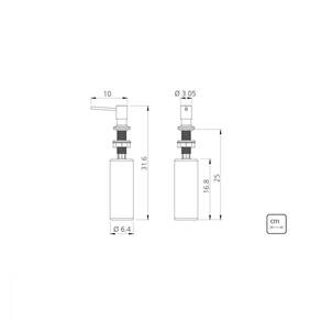 - Informações Gerais : Material: - Corpo: Aço Inox 304 - Recipiente: Plástico Capacidade: 500 ml Furo para instalação: 35 mm