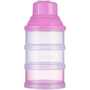 O pote possui três compartimentos, permitindo armazenar até 3 porções de leite em pó, garantindo a praticidade e conveniência na hora de alimentar o bebê em qualquer lugar.