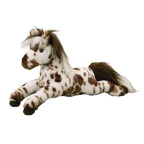 Sela e passeie pela pradaria solitária com o animal de pelúcia Duke the Appaloosa Horse! Apresentando pelúcia ultra macia com estampa de aparalose de leopardo, as manchas marrons achocolatadas de Duke lhe conferem uma aparência atraente. Sua juba e cauda sedosas são representadas com longos tecidos de pelúcia que imploram para você escovar e acariciá-los. Os olhos cor âmbar criam a expressão gentil de Duke e revelam a natureza leal deste pônei fofinho. Os amantes de cavalos de todas as idades se apaixonarão pelo estilo de corpo flexível de Duke. Cascos suavemente pesados e enchimento de poliéster sedoso combinam-se para criar um amigo equino ultra abracável. Surpreenda alguém especial com Duke o cavalo Appaloosa de pelúcia ou guarde-o para seus próprios estábulos!