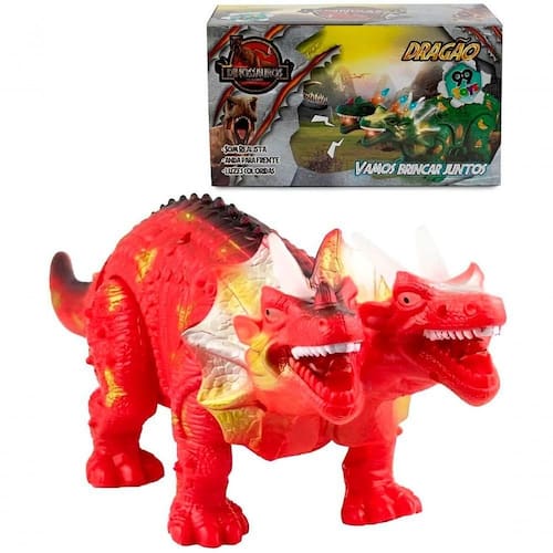 1 Brinquedo ;Dragão De ;2 Cabeças Com Luzes Led Som e ;Movimentos;