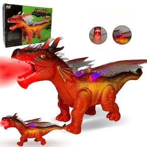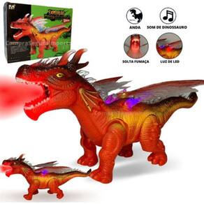 Explore uma incrível aventura com o Dinossauro de Brinquedo Solta Fumaça! Este dragão vermelho é perfeito para garantir muita diversão e imaginação para as crianças. Com ele, a brincadeira fica ainda mais realista, já que ele emite som, luz, anda e solta fumaça!