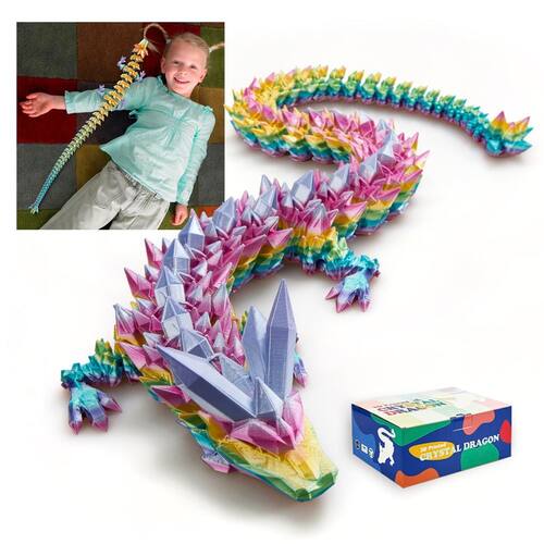 Dragão grande impresso em 3D, brinquedo de dragão, presente impresso em 3D, dragão impresso em 3D de 76 cm, dragão 3D - ?Dragão impresso em 3D? Este dragão impresso em 3D de 76 cm é um brinquedo perfeito impresso em 3D, divertido e flexível (tem bordas afiadas e pode não ser adequado para crianças pequenas) - ?Presente grande de brinquedo de dragão?Este é um grande dragão de cristal, que pode ser utilizado para decorar sua casa ou escritório, como um presente surpresa, para aniversários e outros festivais - ?Material não tóxico?Este dragão 3D é feito de materiais ecológicos, com forma única e belas cores. - ?Brinquedos impressos em 3D?Dragões impressos em 3D podem criar uma experiência tátil agradável. - ?Inclui?Dragão de 76 cm e uma linda caixa