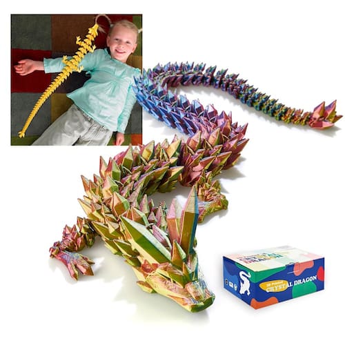 Dragão grande impresso em 3D, brinquedo de dragão, presente impresso em 3D, dragão impresso em 3D de 76 cm, dragão 3D - ?Dragão impresso em 3D? Este dragão impresso em 3D de 76 cm é um brinquedo perfeito impresso em 3D, divertido e flexível (tem bordas afiadas e pode não ser adequado para crianças pequenas) - ?Presente grande de brinquedo de dragão?Este é um grande dragão de cristal, que pode ser utilizado para decorar sua casa ou escritório, como um presente surpresa, para aniversários e outros festivais - ?Material não tóxico?Este dragão 3D é feito de materiais ecológicos, com forma única e belas cores. - ?Brinquedos impressos em 3D?Dragões impressos em 3D podem criar uma experiência tátil agradável. - ?Inclui?Dragão de 76 cm e uma linda caixa