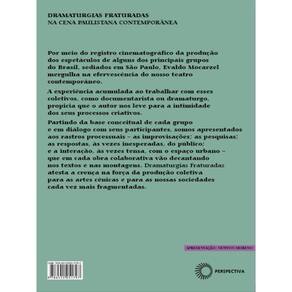 A partir de sua experiência com grupos de teatro que utilizam o espaço urbano como cenário e tema, Evaldo Mocarzel analisa os processos criativos colaborativos e as “fissuras” (improvisações, pesquisas, questões relativas ao espaço selecionado, reação do público) que eles produzem nos textos e que geram o que ele chama de “dramaturgias fraturadas”. Ean: 9786555051797