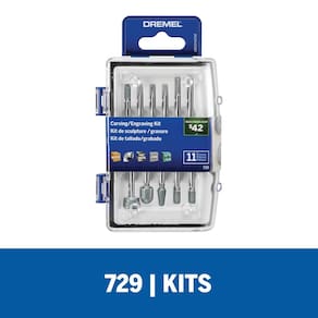 Dremel Kit De Acessórios De Micro Retífica Para Gravar, Esculpir e Esmerilhar - 11 Peças Modelo 729 As pontas de diamante e pedras de amolar de carboneto de silício. Detalhadamente nesse kit contém 1 estojo plástico com 1 escareador para gravar de ponta redonda de 0,8mm para madeira, metal, couro, plástico, EVA e papelão modelo 105 , 1 escareador para gravar de ponta redonda de 1,6mm para madeira, metal, couro, plástico, EVA e papelão modelo 106 , 1 escareador para gravar de ponta redonda de 2,4mm para madeira, metal, couro, plástico, EVA e papelão modelo 107 , 1 escareador para gravar de ponta quadrada de 0,8mm para madeira, metal, couro, plástico, EVA e papelão modelo 108 , 1 escareador diamantado para gravar de ponta redonda de 2mm vidro, cerâmica e pedra modelo 7103 , 1 escareador diamantado para gravar de ponta fina de 2mm para vidro, cerâmica e pedra modelo 7134 , 1 pedra formato chama de fogo para esmerilhar de 7,1mm para vidro, pedra, cerâmica, alumínio e cobre modelo 83142 , 1 pedra formato cilíndrica de ponta arredondada para esmerilhar de 3,2mm para vidro, pedra, cerâmica, alumínio e cobre modelo 83322 , 1 pedra formato quadrada para esmerilhar de 3,2mm para vidro, pedra, cerâmica, alumínio e cobre modelo 83702 , 1 pedra formato pêra para esmerilhar de 4,8mm para vidro, pedra, cerâmica, alumínio e cobre e gravar em vidro modelo 84922 , 1 pedra formato disco para esmerilhar de 10,3mm para vidro, pedra, cerâmica, alumínio e cobre modelo 85602 . Kit de Acessórios Gravar 11 Peças. 1 estojo plástico com 1 escareador para gravar de ponta redonda de 0,8mm para madeira, metal, couro, plástico, EVA e papelão modelo 105 , 1 escareador para gravar de ponta redonda de 1,6mm para madeira, metal, couro, plástico, EVA e papelão modelo 106 , 1 escareador para gravar de ponta redonda de 2,4mm para madeira, metal, couro, plástico, EVA e papelão modelo 107 , 1 escareador para gravar de ponta quadrada de 0,8mm para madeira, metal, couro, plástico, EVA e papelão modelo 108 , 1 escareador diamantado para gravar de ponta redonda de 2mm vidro, cerâmica e pedra modelo 7103 , 1 escareador diamantado para gravar de ponta fina de 2mm para vidro, cerâmica e pedra modelo 7134 , 1 pedra formato chama de fogo para esmerilhar de 7,1mm para vidro, pedra, cerâmica, alumínio e cobre modelo 83142 , 1 pedra formato cilíndrica de ponta arredondada para esmerilhar de 3,2mm para vidro, pedra, cerâmica, alumínio e cobre modelo 83322 , 1 pedra formato quadrada para esmerilhar de 3,2mm para vidro, pedra, cerâmica, alumínio e cobre modelo 83702 , 1 pedra formato pera para esmerilhar de 4,8mm para vidro, pedra, cerâmica, alumínio e cobre e gravar em vidro modelo 84922 , 1 pedra formato disco para esmerilhar de 10,3mm para vidro, pedra, cerâmica, alumínio e cobre modelo 85602 : 6 meses Gravar, Esculpir e Esmerilhar. Madeira, Metal, Plástico, Couro, Borracha EVA, Papelão, Cerâmica, Pedra, Vidro, Fibra de Vidro.