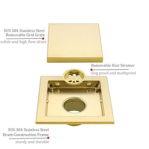 Sobre o produto: 1. Nome do produto: quadrado de ralo de chuveiro dourado. 2. Local de origem: Guangdong, China (continente). 3. Nome da marca: aleatório. 4. Número do modelo: RD98728BG. 5. Material do corpo principal: aço inoxidável SUS304. 6. Tratamento de superfície: ouro escovado. 7. Detalhes da embalagem: 1 dreno de piso. Sobre os fabricantes: Empresa Langdeng. Fundada em 2006, tem uma fábrica moderna que constrói pessoas qualificadas de gestão e torneira de alavanca técnica qualificada, válvula de descarga e todos os tipos de sempre respeitamos o princípio de gestão de "Configurar a marca chinesa, caminhar pelo mundo". Nossos produtos de excelente qualidade, bons serviços, técnica avançada e design inteligente de nossos produtos ganharam suporte e trusts de clientes de casa e no exterior. Além disso, por meio do site de vendas, a maioria dos nossos produtos são exportados para a América do Norte, Europa, Austrália e Sudeste Asiático, etc. Escolha a qualidade, escolha aleatória! ! - ??Design quadrado?: nosso ralo quadrado dourado para chão de chuveiro de 15 cm de comprimento, 15 cm de largura, 5 cm de saída de alto fluxo. Capacidade de alto fluxo de 20 a 25 L/min (não parafuse no tipo de elevação de drenagem). Serve para sistema de base de drenagem sem cubo. A base de drenagem de chuveiro de PVC sem cubo de 5 cm pode ser comprada separadamente. - ??Material de drenagem à prova de ferrugem?: Feito de aço inoxidável 304 de alta qualidade, acabamento em ouro escovado, flange de base feita de estrutura de PVC. Superfície de drenagem com acabamento em ouro escovado, protege contra corrosão, arranhões e ferrugem para maior durabilidade. Garante longa vida útil. Padrão da indústria. - ??Design humanizado?: nossa capa de drenagem quadrada com design para melhorar o fluxo de água, um lado plano e um lado de inserção de azulejo (espessura do pelo = 12 mm), tornam a cor no seu chão, pode ser usada em muitos lugares, cozinha, banheiro, garagem, porão e vaso sanitário. - ??Coletor de cabelo de ralo de chuveiro?: O kit de drenagem inclui coador/armadilha de cabelo removível com base de ralo de chuveiro, e você pode retirar a capa facilmente para limpar. - ??Serviço pós-venda?: 5 anos de garantia de qualidade. 100% de qualidade. Escolha a qualidade, escolha aleatória. Apoiado pela Kaiping City RANDOM Plumbing Factory. Em caso de danos ou vazamentos em uso futuro, com o vendedor sem hesitação para substituição a qualquer momento.