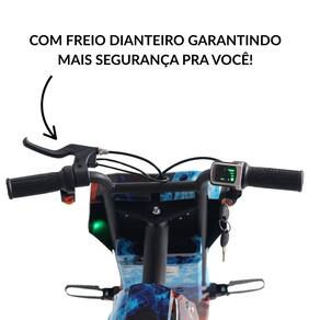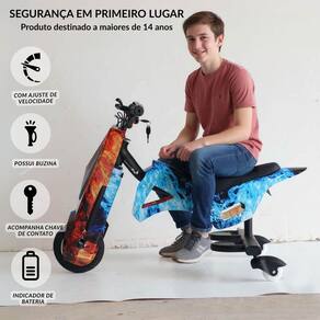 Possui freio dianteiro, além de luz de LED, deixando a brincadeira ainda mais radical.