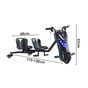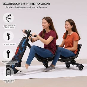 Itens Inclusos: 1 Drift Triciclo Elétrico Duplo, 1 Carregador, 1 Kit Parafusos e Chaves, 1 Manual
