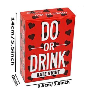 Material: Papel Cor: vermelho Tamanho da embalagem: 9,5 × 4,2 × 14 cm Peso da embalagem: 0,44 kg Lista de embalagem: 1 x Drinking Card Game Deck (50 cartas) O divertido jogo de beber para casais — Do or Drink Date Night foi criado para casais que desejam adicionar emoção às noites com desafios divertidos, perguntas e desafios divertidos de beber. Perfeito para encontros noturnos — Ótimo para noites românticas, aniversários, festas ou encontros de casais, ajudando parceiros a se conectarem, rirem e aprenderem mais um sobre o outro. Cartões para iniciar conversas — incluem instruções envolventes e tarefas divertidas que incentivam a comunicação, a narrativa e a competição divertida entre parceiros. Jogabilidade simples e fácil — Os jogadores compram uma carta e optam por completar o desafio ou tomar uma bebida, tornando-o um jogo de festa divertido e rápido. Deck de jogo compacto para festas — Conjunto de cartões portátil com cartões de papel duráveis, fácil de transportar para festas, viagens ou reuniões com amigos e casais.