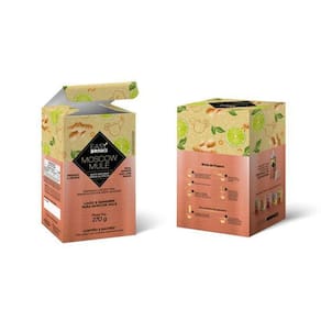 Drinks Moscow Mule Com 6 Sachês - Easy Drinks 270G Base líquida concentrada de limão e gengibre para Moscow Mule - Prepara 06 drinks Moscow Mule Clássico 1. Encha a caneca de cobre com o gelo moído 2. Coloque 50ml de vodka 3. Use o conteúdo inteiro de um sachê de base Moscow Mule Easy Drinks 4. Complete com 80ml de água com gás 5. Agite o drink até gelar bem dica: use uma colher bailarina e cuidado para não perder o gás