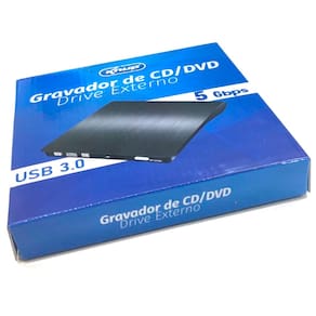 Drive DVD-RW externo slim, portátil, com design plug and play e conexão USB 3.0.Características