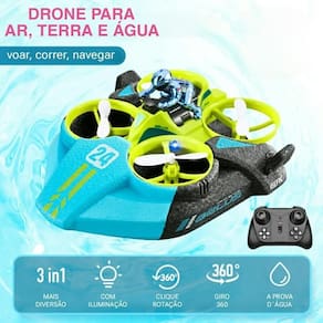Mini drone 3 em 1 terra - água - ar 4d-v24 - quadcoptero com controle 2.4ghz 4 motores - 4drc Pequeno, leve e fácil de brincar. Modelo 4d-v24 garante qualidade e durabilidade. Desmontável, você brinca no ar, na terra e na água com o mesmo drone Design fácil de pilotar, mesmo se você nunca tiver operado um modelo antes é simples de manobrar. O motor potente ajuda o drone a decolar e se manter no ar e fazer suas manobras, sem dificuldade. Possui giroscópio inteligente com 6 induções de gravidade, ajuste de ar, design de direção diferencial do motor. Funções de seu drone: - possui 3 velocidades ajustáveis através de seu controle. Adaptável para qualquer ambiente e garantir a melhor experiência - motor escovado, de potência e qualidade - alarme de bateria fraca e função de pouso automático - a bateria possui sensor de carregamento, garantindo maior durabilidade - modo de voo use a aeronave sozinha / modo terra a aeronave combinada com o hovercraft / modo de superfície a aeronave combinada com o hovercraft - casco de espuma super-resistente. Fácil de trocar os modos de diversão. Não se limita ao ambiente interior, exterior, piscina e outras superfícies aquáticas . Destaques do produto: - controle remoto intuitivo para manobras precisas - estrutura em epp resistente e durável, ideal para qualquer aventura - design moderno que garante estabilidade e velocidade - perfeito para uso ao ar livre ou em espaços amplos internos Diversão garantida para pilotos iniciantes e experientes. Esse drone possui um controle com transmissor de rádio de 2.4 ghz, bateria interna e um carregador. Recebeu, montou e brincou você irá desfrutar de uma maravilhosa experiência de voo. Indicado para crianças a partir de 14 anos de idade. Informações técnicas - marca: 4drc - modelo: drone 4d-v24 3em1 mini com controle 2.4ghz 4 motores - material: epp resistente e durável - função: para cima / para baixo / esquerda / direita / frente / trás - controle necessita de pilhas 3 x aaa não inclusos - avião acompanha bateria 3.7v 700mah incluso - distância de controle: até 80 metros - tempo de carregamento: aproximadamente 50 minutos - tempo de voo: 12-15 minutos - dimensões: 18 cm comprimento / 9 cm altura / 18 cm largura - peso líquido: 67g / peso bruto: 370g - embalagem: 20x12x21 cm Conteúdo da caixa: - 1x corpo do drone com 4 motores - 1x bateria - 2x helice de reposição - 1x controle remoto - 1x cabo de carregamento - 1x chave de fenda - 1x manual de instruções Anatel: 03856-23-14059 Marca: Não Informado Ean: 7906689248029