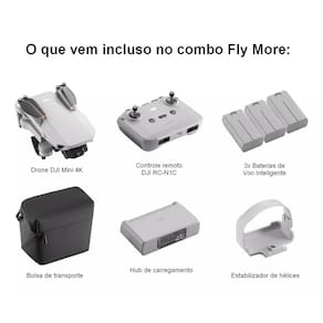 Drone DJI Mini 4K com Combo Fly MoreO drone DJI Mini 4K é um drone de entrada fantástico com capacidade de gravar vídeos em 4K, facilidade de voo e um preço acessível! Além disso, a atualização mais significativa do Mini 4K em comparação com o DJI Mini 2 SE é, como o nome sugere, sua câmera. Este modelo oferece gravações em 4K/30FPS. E o gimbal de 3 eixos garante imagens suaves e estáveis, proporcionando uma qualidade de vídeo profissional. E esta versão do Mini 4K inclui o Combo Fly More com acessórios extras. Esses são alguns dos acessórios mais essenciais que você precisará para ficar no ar por mais tempo, consertar hélices quebradas e proteger seu equipamento enquanto o transporta de um local para outro. Comparado aos acessórios padrão incluídos com o Mini 4K, você recebe estes itens adicionais:- Duas baterias de voo adicionais- Hub de carregamento bidirecional- Bolsa de transporte- Suporte para estabilizar as hélices durante o transporte- Dois pares adicionais de hélices e 12 parafusos adicionais para elasSendo um drone extremamente leve e portátil, o DJI Mini 4K pesa menos de 249 gramas, tendo praticamente o mesmo peso de uma maçã e que cabe na palma de suas mãos. Compacto e prático, ele será seu companheiro de viagens ideal, transformando a maneira de capturar seus momentos favoritos. Com ele é possível realizar transmissões de vídeo em HD a até 10km com excelente habilidades anti interferência, permitindo que voe mais longe e veja além.Com bateria de duração máxima de 31 minutos, o DJI Mini 4K entrega tempo de voo suficiente para fazer a captura perfeita, além de voar com estabilidade, mantendo suas gravações em segurança até mesmo ao voar em ambientes com ventos de nível 5 a até 38 km/h, e pode chegar até 4000m de altitude.O DJI Mini 4K é uma excelente escolha para pilotos de drone iniciantes que estão procurando uma opção compacta e acessível para capturar imagens aéreas de alta qualidade. Com recursos fáceis de usar e excelente qualidade de imagem, o Mini 4K torna o voo de drones acessível para um público mais amplo.Ele é uma ótima opção de entrada no mundo da videografia com drones. Sua combinação de acessibilidade, portabilidade e recursos fáceis de usar o torna uma escolha excelente tanto para iniciantes quanto para pilotos experientes.Dados técnicos:Marca: DJIModelo: DJI Mini 4KVídeo: 4K até 30FPS e 2.7K até 60FPSFoto: 12MPGimbal: 3 eixosTempo máximo de voo: até 31 minutos em condições ideaisResistência ao vento: Nível 5 (29 a 38 km/h)Distância: Até 10kmAltitude: 4000mPeso: 249 gramasItens inclusos:1x Drone DJI Mini 4K1x Controle remoto DJI RC-N1C3x Baterias2x Par de hélices12x Parafusos1x Cabo USB-C1x Cabo Controle Remoto USB-C1x Cabo Controle Remoto Lightning1x Cabo Controle Remoto Micro-USB1x Chave de fenda1x Estabilizador de hélices1x Tampa de gimbal1x Bolsa de transporte1x ManualGarantia de 1 ano de fábrica.