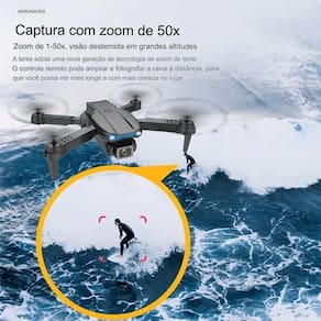 O drone oferece uma câmera de alta resolução 4k para capturar fotos e vídeos detalhados, ideal para imagens em alta definição. Construído com plástico abs resistente, é projetado para suportar quedas sem danos significativos. Possui um zoom de foco 50x que permite capturar cenários importantes com precisão, garantindo fotos nítidas.