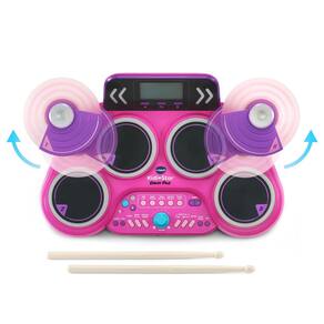 VTech Kidi Star Drum Pad, rosa - Aumente a criatividade usando 20 sons de estilo de bateria, incluindo rock, banda marcial, metal, jazz e muito mais, para criar músicas exclusivas - Toque junto com mais de 30 músicas ou toque um solo de bateria e aperte o botão de gravação para capturar e reproduzir sua apresentação - Conecte-se à sua própria música via tecnologia sem fio BLUETOOTH ou cabo de áudio; toque junto com a música e ouça pelo alto-falante embutido ou fone de ouvido (reprodutor de música, cabo de áudio) e fones de ouvido (não incluídos) - Mostre suas habilidades de bateria com três jogos emocionantes e afie seus talentos com o modo Coach - Destinado a maiores de 5 anos; requer 4 pilhas AA; baterias incluídas somente para fins de demonstração; baterias novas recomendadas para uso regular