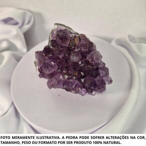 Drusa Ametista Pedra Natural Bruta 150 a 300 Gramas Proteção Drusa Ametista Pedra Natural Bruta 150 a 300 Gramas Proteção A Ametista é uma pedra natural que traz proteção ao lar, harmônia para a mente e cura para o corpo. É uma pedra com alto nível de energia vibratória por ser uma pedra com grande alcance espiritual. A Ametista tem o poder de transformar energias negativas como , tristezas e mágoas, em energias positivas. Pode ser utilizada no processo de Cura: Ativa o sistema linfático e a circulação sanguínea, combate vícios, alivia enxaquecas e a tensão. A Ametista trata a insônia e promove um sono reparador. Ela harmoniza e conecta os corpos físico, mental e emocional, ligando-os ao espiritual. Chakra: Frontal Sexto Elemento: Água Como energizar: O lítio e o manganês presentes na composição desse cristal são voláteis, por isso, ele não deve ficar exposto ao sol, pois perderá esses minerais que evaporarão. Portanto, a sua energização deve ser feita na luz do luar por no mínimo 4 horas seguidas. Feng Shui: Pode ser Utilizado como decoração na entrada da casa na função de proteção do lar contra energias negativas, na sala para motivar a concentração, memória e criatividade ou no quarto para melhorar a qualidade do sono e afastar pesadelos. Observação: Por serem pedras 100% naturais podem ter variações de coloração, tamanho e peso +/-10 gramas em relação à imagem do anúncio, entretanto, terão a mesma qualidade. Os cristais podem conter fissuras naturais, ranhuras naturais e veios naturais. Marca: Não Informado Ean: 7894135798566