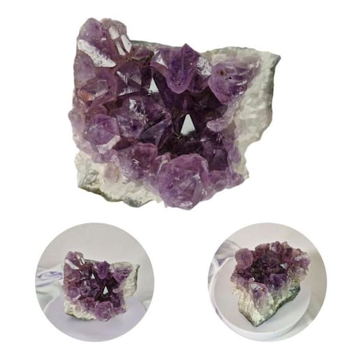 Drusa Ametista Pedra Natural Bruta 300 a 500 Gramas Proteção Drusa Ametista Pedra Natural Bruta 150 a 300 Gramas Proteção A Ametista é uma pedra natural que traz proteção ao lar, harmônia para a mente e cura para o corpo. É uma pedra com alto nível de energia vibratória por ser uma pedra com grande alcance espiritual. A Ametista tem o poder de transformar energias negativas como , tristezas e mágoas, em energias positivas. Pode ser utilizada no processo de Cura: Ativa o sistema linfático e a circulação sanguínea, combate vícios, alivia enxaquecas e a tensão. A Ametista trata a insônia e promove um sono reparador. Ela harmoniza e conecta os corpos físico, mental e emocional, ligando-os ao espiritual. Chakra: Frontal Sexto Elemento: Água Como energizar: O lítio e o manganês presentes na composição desse cristal são voláteis, por isso, ele não deve ficar exposto ao sol, pois perderá esses minerais que evaporarão. Portanto, a sua energização deve ser feita na luz do luar por no mínimo 4 horas seguidas. Feng Shui: Pode ser Utilizado como decoração na entrada da casa na função de proteção do lar contra energias negativas, na sala para motivar a concentração, memória e criatividade ou no quarto para melhorar a qualidade do sono e afastar pesadelos. Observação: Por serem pedras 100% naturais podem ter variações de coloração, tamanho e peso +/-10 gramas em relação à imagem do anúncio, entretanto, terão a mesma qualidade. Os cristais podem conter fissuras naturais, ranhuras naturais e veios naturais.